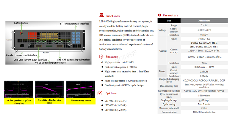 LIT-05006/05012 Battery Test System 8ch (4 Range)