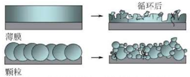 碳纳米管导电性能优,适配硅基负极。碳纳米管(CNT)是一种新型导电剂,可以降低降低锂电池的内阻,提高锂电池极片的粘结强度和电池循环寿命。与炭黑相比,碳纳米管可以在活性物 质之间形成的线接触式、面接触式导电网络更为充分,能够更加明显提升导电性能,碳纳米管可以有效降低阻抗,导电性能更好。在达到相同导电效果,碳纳米管的用量仅为炭黑的1/6- 1/3。此外,碳纳米管可以缓解硅材料在充放电过程中由于膨胀造成的结构坍缩,适配硅基负极。