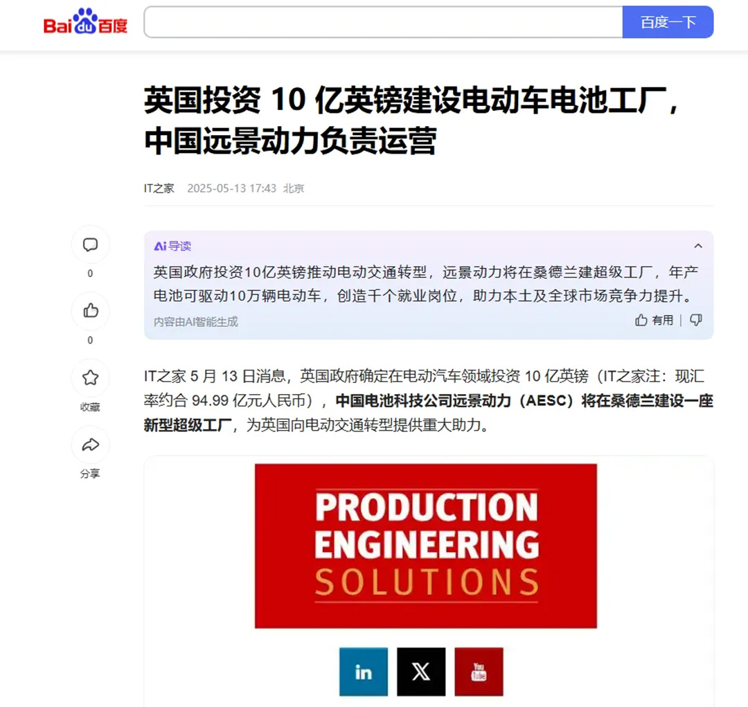 当法国总统马克龙为远景法国工厂投产致辞,当英国政府为远景桑德兰工厂及电池行业注入 10 亿英镑融资,OB电竞·(中国)电子竞技平台,科技正以核心供应商的身份,深度参与这场欧洲 “电池谷” 崛起浪潮。