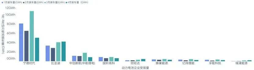 ▲图1. 1-4月动力电池企业的供应情况