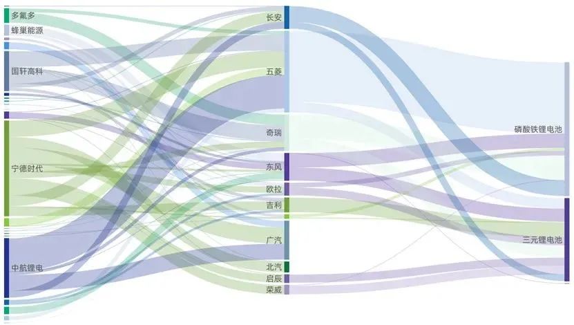 当然从电池供应商来看,宁德时代覆盖了所有的新势力;中航进了零跑和小鹏,蜂巢能源进了零跑和哪吒。