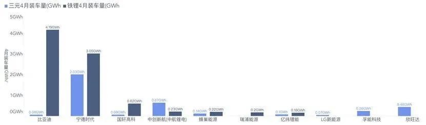 这是宁德时代和比亚迪差距最小的一个月,其中磷酸铁锂电池比亚迪的安装量还反超了宁德时代。在这个里面电池的需求还是非常取决于车企的能力。