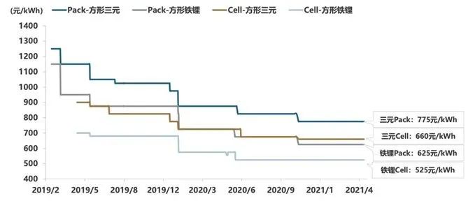 ▲图5. 中国动力电池价格呈现梯度下降