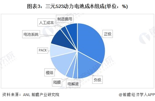 根据ANL机构发布的数据显示,目前市面上新能源汽车的动力电池供应主要为三元523和磷酸铁锂电池两种,其市场占有率超过99%,其中三元523动力电池中动力电池PACK工艺的成本费用占到总电池费用成本的8.02%。