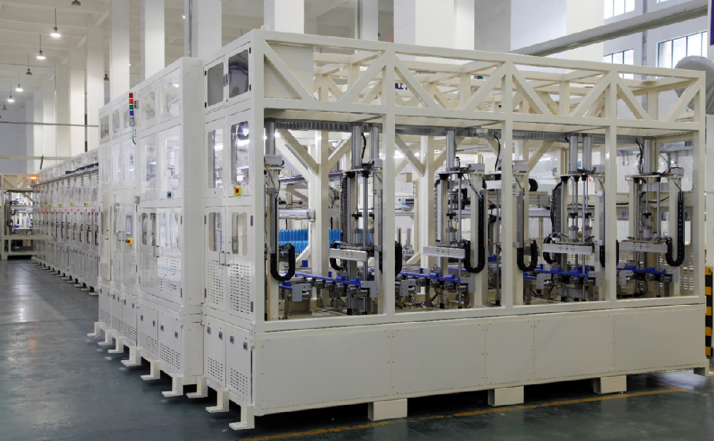 软包动力电池化成分容一体机主要用于软包装锂离子电池的热压化成及分容过程。在加热加压状态下进行电池化成,压力采用可调的控制,优化化成效果,缩减电池制作周期;化成结束后,机械手直接搬运电池到分容治具,分容治具采用恒温控制,温度一致性达到±2 ℃,解决了电池在分容过程中散热不均的问题。分容采用加压、恒温充放电模式,提高分容的效率,减少电池搬运次数,提高电池生产的合格率,提升电池品质。